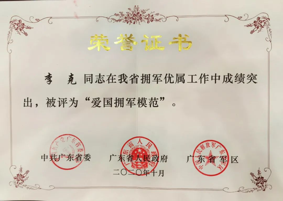 抗疫先鋒,沖鋒在前 2020年春節(jié),李克帶領(lǐng)其退役軍人志愿服務團隊積極響應市委、市政府號召,從大年初四開始,一直堅持奮戰(zhàn)在社區(qū)防疫第一線,協(xié)助東區(qū)街道派發(fā)防疫宣傳單張、開展上門排查、隔離酒店配餐、卡口值勤等,他本人更是連續(xù)奮戰(zhàn)60天,平均每天7-8小時,志愿服務時數(shù)達460多個小時,全隊志愿服務時數(shù)達到3800多個小時。同時,他四處籌集防疫物資,向市人民醫(yī)院、疫區(qū)部隊醫(yī)院、一線民警、學校和社區(qū)捐贈防護服、防護口罩以及防護手套等合計5萬多元。在李克的發(fā)動下,東區(qū)退役軍人紅旗志愿服務隊從成立之初的10余人發(fā)展到現(xiàn)在有200多人的志愿隊伍。因防疫工作突出,東區(qū)退役軍人紅旗志愿服務隊獲得了省、市多項榮譽表彰。 李克說,獲得“廣東省愛國擁軍模范”稱號殊榮,是他一生的榮光,他將始終保持著感恩的心,視榮譽如生命,繼續(xù)秉承老一輩的光榮傳統(tǒng),擦亮退役軍人真本色,全面推廣紅色基因和革命光榮傳統(tǒng)教育?!爸灰獓液腿嗣袢罕娪行枰?,我將義無反顧沖鋒在前當‘尖’兵?!?/p> |