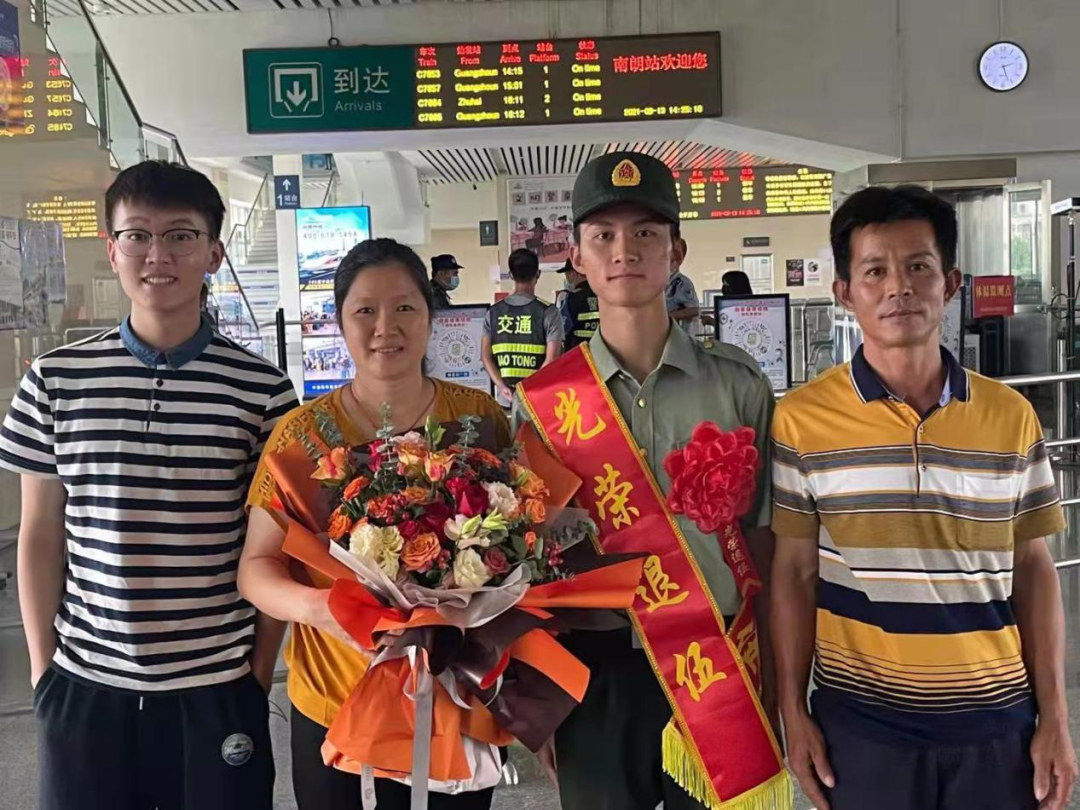 “去時(shí)鑼鼓喧天,歸來(lái)夾道歡迎?!?/p> 九月,正是退役軍人 從祖國(guó)各座軍營(yíng) 返回家鄉(xiāng)的退役季 為營(yíng)造“一次參軍、一生光榮”的濃厚氛圍 讓退役軍人感受到家鄉(xiāng)人民的熱情和關(guān)懷 激發(fā)老兵退伍不褪色 返鄉(xiāng)建新功的壯志熱情 9月13日下午,五桂山街道2021年首位退役軍人曾世紀(jì)光榮退役返鄉(xiāng)。街道退役軍人服務(wù)中心負(fù)責(zé)人、社區(qū)“兩委”干部、工作人員以及曾世紀(jì)的父母早早手持鮮花,在城軌南朗站等候迎接世紀(jì)回家。 回想2019入伍歡送大會(huì)時(shí)曾世紀(jì)代表五桂山即將入伍的新兵作表態(tài)發(fā)言,那年,他主動(dòng)請(qǐng)纓,到艱苦邊遠(yuǎn)地區(qū)服役?!皡④姴粌H是個(gè)人的榮耀,也是家人的榮耀,更是鄉(xiāng)親們的榮耀。到了部隊(duì)后我會(huì)堅(jiān)決服從命令,聽從指揮,刻苦訓(xùn)練,勤學(xué)本領(lǐng),絕不辜負(fù)家鄉(xiāng)人民的期望!”