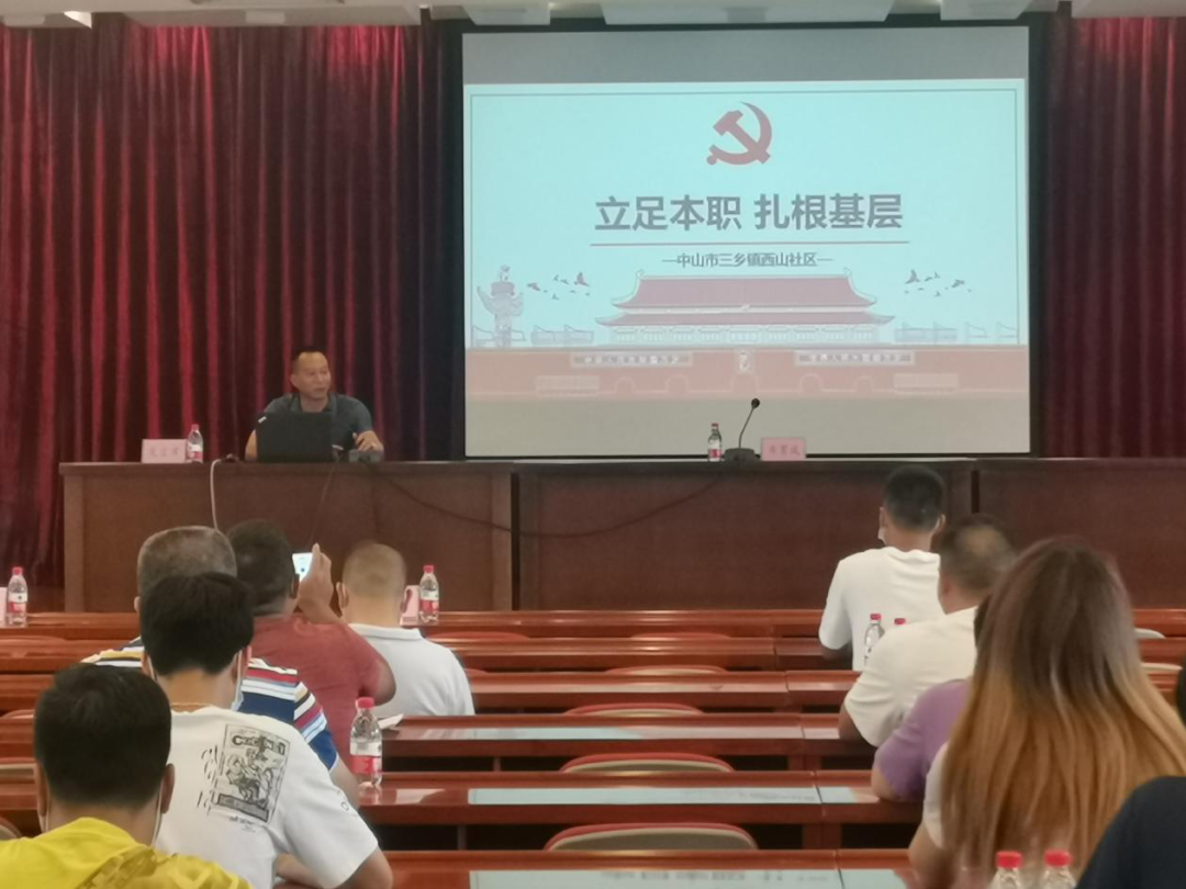 活動(dòng)現(xiàn)場(chǎng),三鄉(xiāng)鎮(zhèn)優(yōu)秀退役軍人代表、西山社區(qū)書記李敏超首先結(jié)合個(gè)人學(xué)習(xí)成長(zhǎng)經(jīng)歷,和大家作了《立足本職 扎根基層》主題宣講,分享了他退役后在基層工作的心得感悟。