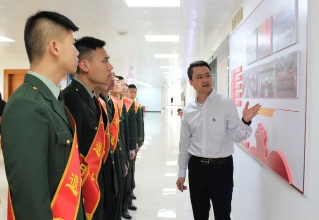 會前,鎮(zhèn)黨委委員冼嘉濤、副鎮(zhèn)長劉燕文對返鄉(xiāng)的退役軍人表示熱烈歡迎,并合影留念。鎮(zhèn)退役軍人服務(wù)中心為10名退役軍人辦理返鄉(xiāng)報到,并共同參觀了武裝部與退役軍人服務(wù)中心結(jié)合的服務(wù)陣地。