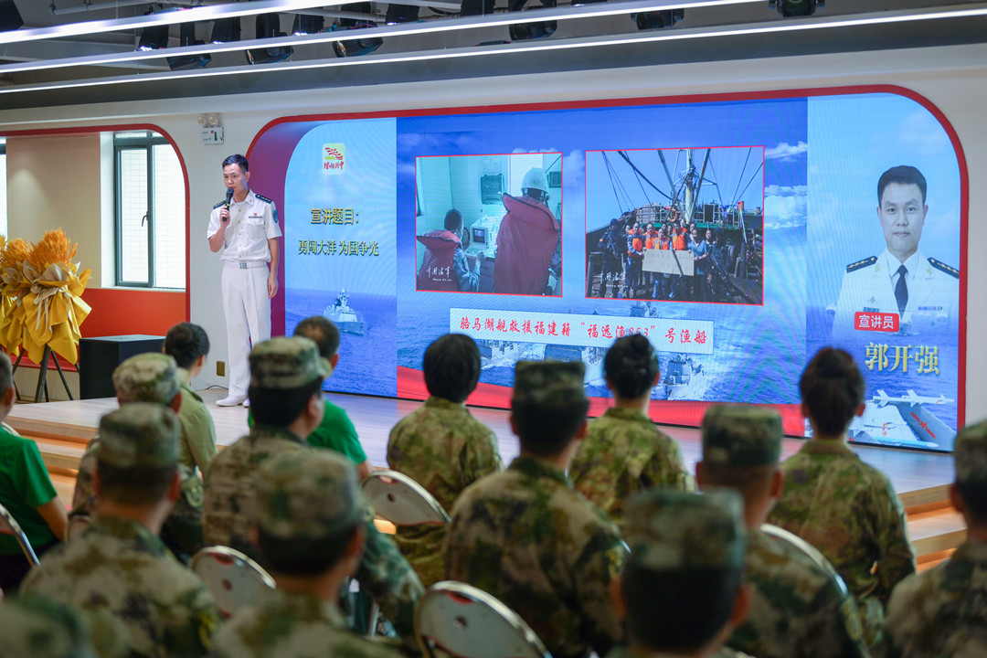 91878部隊(duì)郭開強(qiáng)干事為大家?guī)碇黝}宣講《勇闖大洋 為國爭光》。