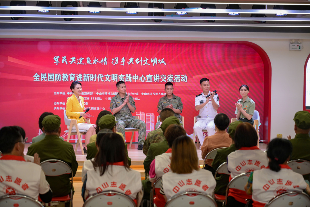 5月18日下午,全民國防教育進(jìn)新時(shí)代文明實(shí)踐中心宣講交流活動(dòng)在中山市民眾街道新時(shí)代文明實(shí)踐中心舉行,退役軍人代表、基層群眾、村干部以及受邀出席的中國人民解放軍91878部隊(duì)、69316部隊(duì)官兵代表等200余人參加活動(dòng)。