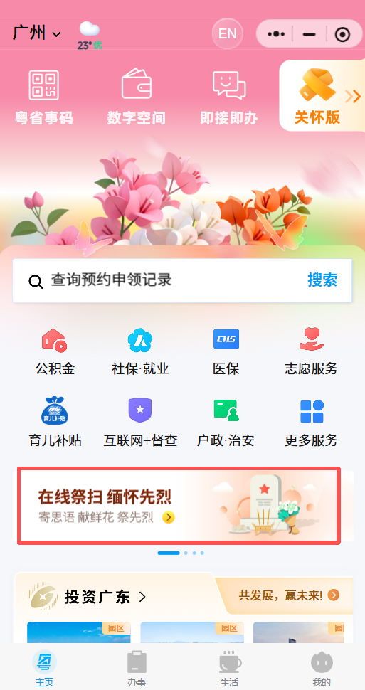 倡導文明祭掃,寄托深切哀思。采取莊重簡約、文明有序的方式緬懷英烈,既可就近前往烈士陵園,為英烈敬獻一束鮮花、敬一個標準軍禮或注目禮,寄托深切哀思;也可通過線上平臺開展祭掃活動,登錄“廣東英烈網(wǎng)”、粵省事“英烈在線祭掃”、粵智助“網(wǎng)上祭英烈”平臺,為南粵英烈云端獻花、留言寄語,以文明新風表達對英烈的敬仰與追思。