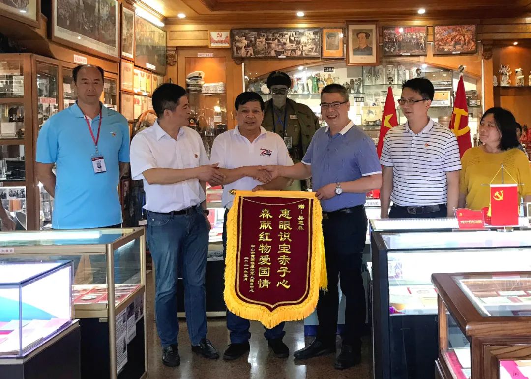 ▲黃圃鎮(zhèn)退役軍人服務(wù)中心向吳惠森贈送錦旗 座談會結(jié)束后,與會人員參觀了吳惠森“家庭軍事博物館”,開展“老兵永遠(yuǎn)跟黨走·重溫紅色故事”主題黨日活動,感悟當(dāng)今生活來之不易,銘記歷史、勿忘國恥,引導(dǎo)廣大退役軍人增強聽黨話、跟黨走的行動自覺,充分營造軍愛民,民擁軍,軍民魚水一家親的良好社會氛圍,提升黃圃鎮(zhèn)退役軍人工作服務(wù)水平,以良好的工作成效慶祝中國共產(chǎn)黨成立100周年。