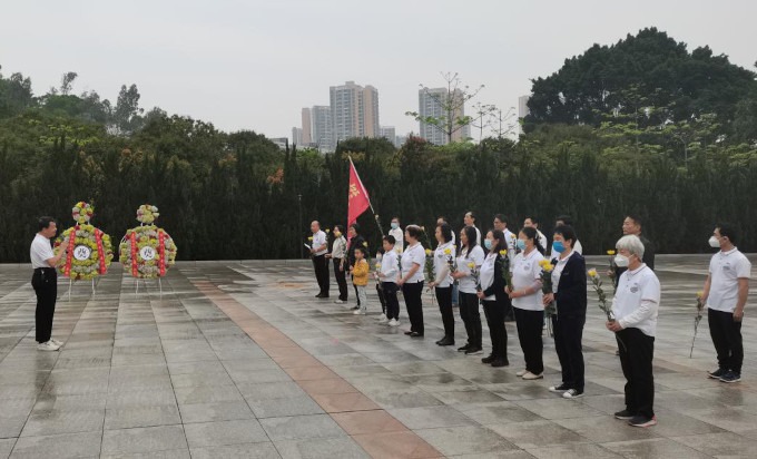 上午10時,參加活動人員排成兩列縱隊,高舉旗幟莊嚴進入烈士陵園。隨后,參加人員開展祭掃儀式,懷著對英烈的崇敬之情,向烈士敬獻花圈和鮮花、鞠躬默哀、寄托哀思,全體參加人員合唱《東江縱隊之歌》,表達對先烈的深切緬懷之情。