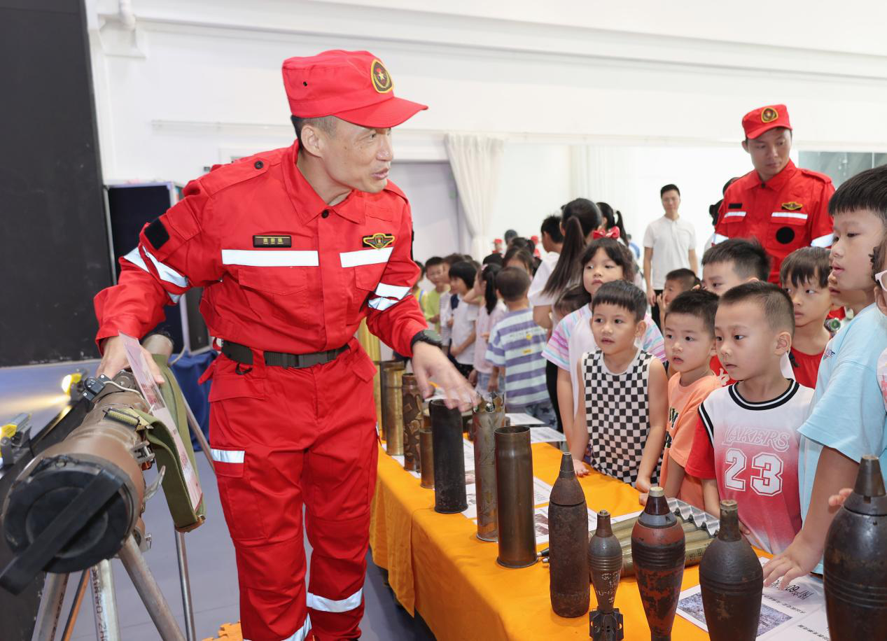 7月24日上午,中山市擁軍支前紅旗服務隊在南區(qū)街道環(huán)城社區(qū)暑期公益夏令營開營儀式上開展安全教育及國防教育,現(xiàn)場共吸引70余名社區(qū)兒童、家長以及志愿者參與。  暑期“安全第一課”。