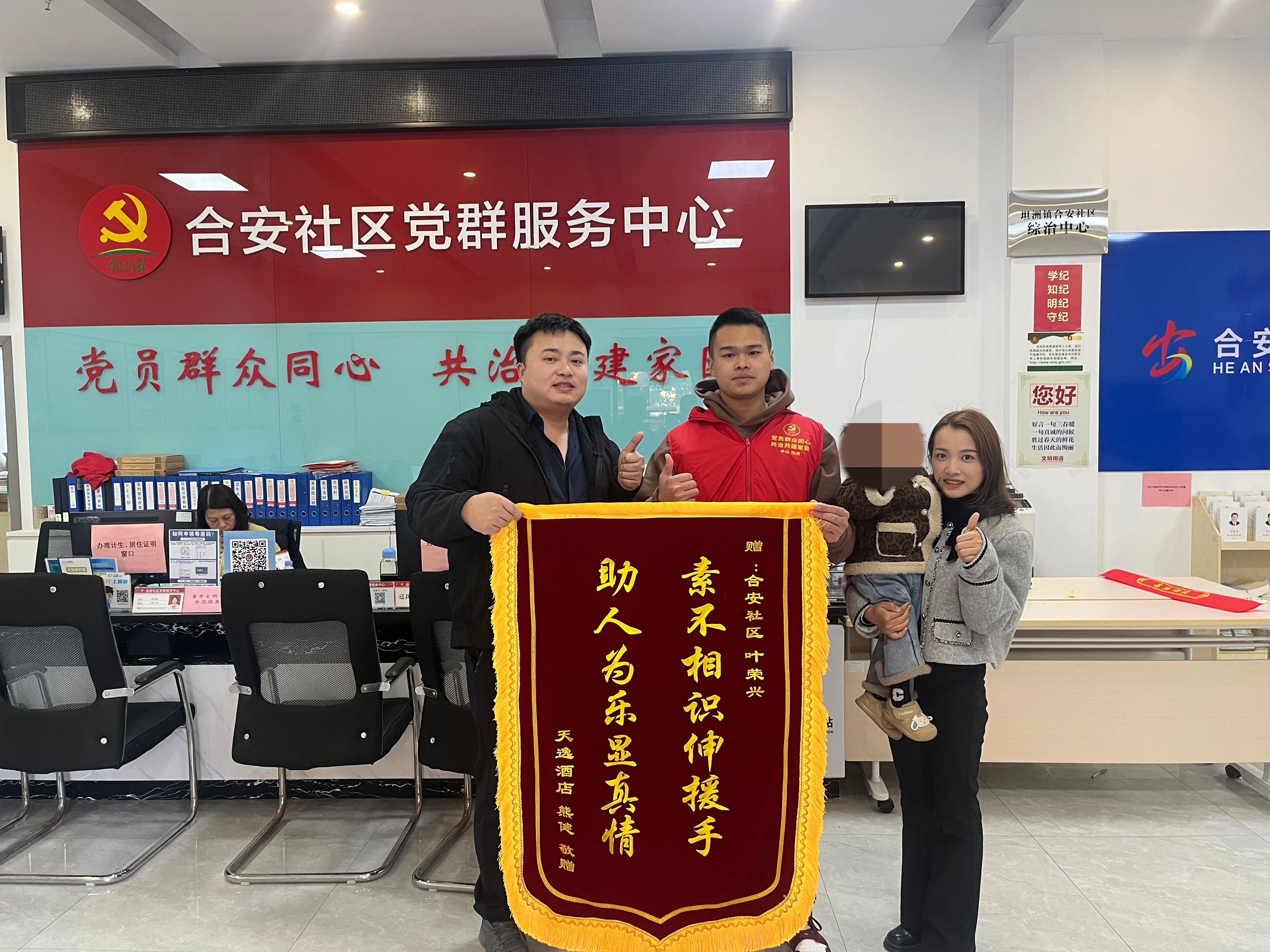 1月16日下午,坦洲鎮(zhèn)合安社區(qū)工作人員、退役軍人葉榮興像往常一樣工作,一對年輕的夫婦到該社區(qū)黨群服務(wù)中心找到他,并親手送上了一面錦旗?!敖K于找到你了,恩人啊,當(dāng)面跟你說一聲謝謝!”原來,1月初,葉榮興仗義出手,令這個(gè)家庭的孩子及時(shí)得到救助,讓夫妻倆銘記在心。  葉榮興(中)仗義出手,收到由熊健夫婦送出的錦旗。受訪者供圖 據(jù)丈夫熊健回憶,1月9日晚上,孩子?jì)寢寧е鴥蓺q多的孩子在外面玩,回到家里洗完澡后,孩子便開始發(fā)高燒,并伴隨著嘔吐、抽搐,情況一度十分危急?!拔耶?dāng)時(shí)不在家里,孩子?jì)寢屢矝]啥經(jīng)驗(yàn),看到孩子這種情況就是一直哭?!?/p> 急促的哭聲和求救聲引起了葉榮興的注意,作為社區(qū)工作人員,當(dāng)時(shí)他剛結(jié)束了“粵居碼”的入夜推廣工作。“我擔(dān)心有人吵架,便循著聲音找了過去?!比~榮興說道。見到孩子?jì)寢屢约傲私馇闆r后,葉榮興一面安撫孩子?jì)寢?,一面撥打?bào)警電話求助,很快趕達(dá)醫(yī)院?!搬t(yī)生說孩子是因?yàn)楦邿鸬囊幌盗袝炟省I吐,不過還好送醫(yī)及時(shí)?!毙芙≌f,孩子是第一次出現(xiàn)這種情況。當(dāng)晚夫妻倆的注意力都在孩子身上,等回過頭來想感謝葉榮興時(shí),卻發(fā)現(xiàn)他早已悄然離去。 最終,熊健通過小區(qū)物業(yè)、社區(qū)間接找到葉榮興,與妻子一起當(dāng)面對他表示感謝,他們的孩子也脫離了危險(xiǎn),身體正在逐漸恢復(fù)。記者看到,在熊健所贈的錦旗上寫著,“素不相識伸援手 助人為樂顯真情。”“我感覺沒什么的,人民群眾有需要的時(shí)候我都會出手?!苯邮懿稍L時(shí),葉榮興說道。 記者 李鑫 通訊員 梁華 廖金旻 ◆編輯:龍慧◆二審:陳吉春◆三審:周亞平 |