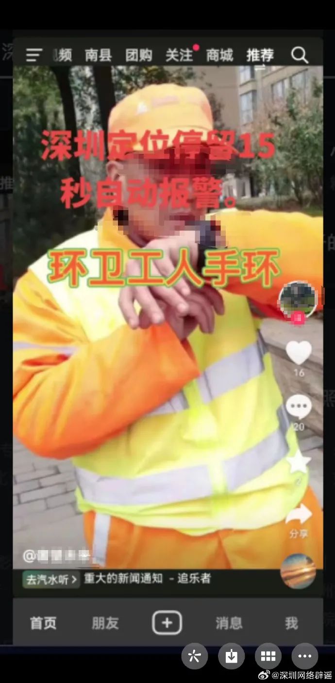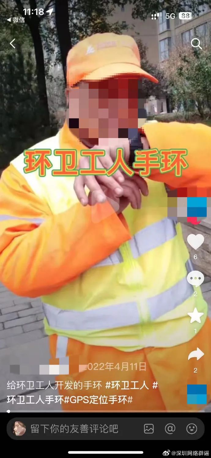 近日,網(wǎng)傳“深圳環(huán)衛(wèi)工人佩戴的定位手環(huán)停留15秒后將自動(dòng)報(bào)警”,記者從深圳市城市管理和綜合執(zhí)法局了解到,該情況不屬實(shí)。傳言中圖片是2022年4月11日上傳的定位手環(huán)功能介紹視頻的視頻封面,于近日被添加了“深圳定位停留15秒自動(dòng)報(bào)警”文字并上傳至新媒體平臺(tái)傳播,對深圳環(huán)衛(wèi)行業(yè)造成不良社會(huì)影響。