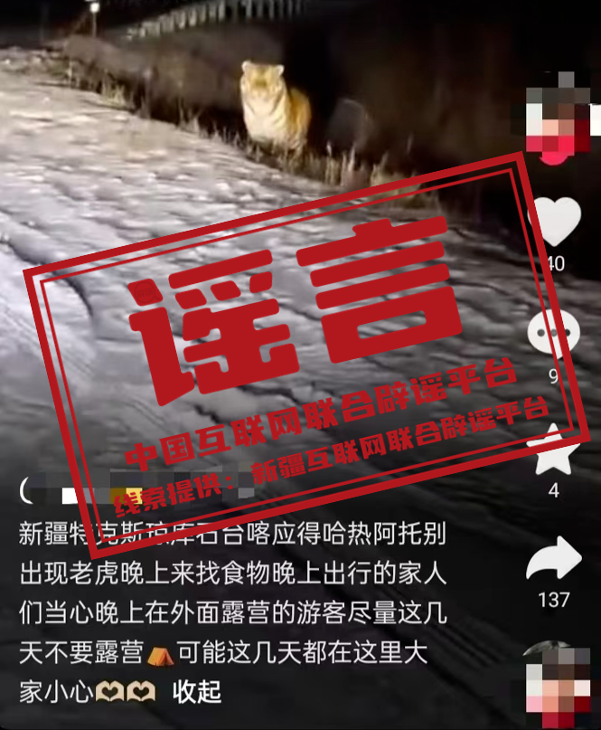 謠 言 新疆伊犁一地出現(xiàn)老虎?