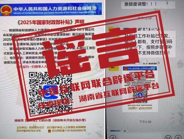 謠 言 掃碼可領取2025年國家財政部補貼?