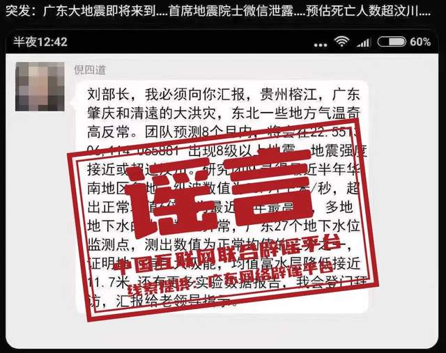 辟謠:網(wǎng)傳院士預(yù)測廣東將發(fā)生8級以上大地震?謠言!已報警