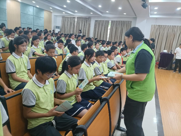 活動過程中,公安人員通過PPT形式為學(xué)生們講解交通安全知識,包括“交通法律法規(guī)”“違反交通規(guī)則的危害性”等,并播放了“鬼探頭”式交通事故警示教育片,讓學(xué)生們在上學(xué)、放學(xué)途中要保持警惕心和細(xì)心,明白到遵守交通規(guī)則的重要性。期間,禁毒社工派發(fā)禁毒宣傳單張向?qū)W生們普及禁毒知識,重點強(qiáng)調(diào)依托咪酯-上頭電子煙的危害性,教育引導(dǎo)學(xué)生們提高識毒、防毒、拒毒的意識和能力。